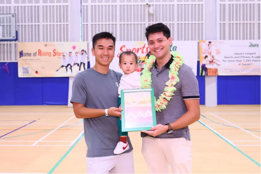 Mr Joseph Schooling, Singapore’s first Olympic Gold Medallist and proud Kinderland alumnus, receiving a token of appreciation from our toddler, Mateo Akira Sato