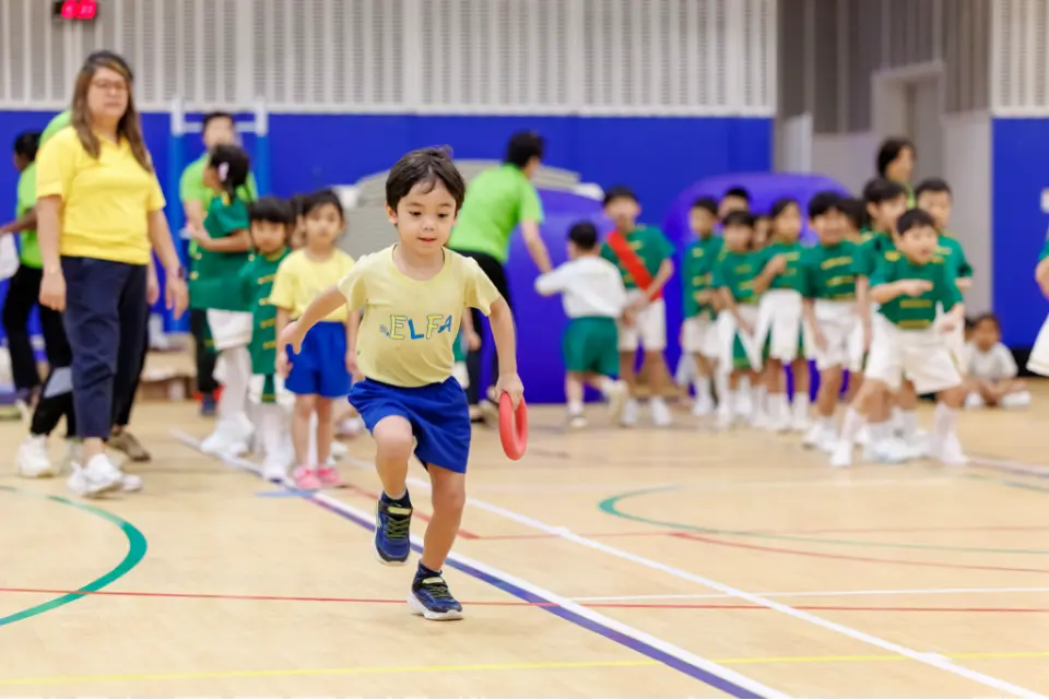Children from ELFA Preschool race with enthusiasm, reflecting the school’s focus on active and holistic learning.