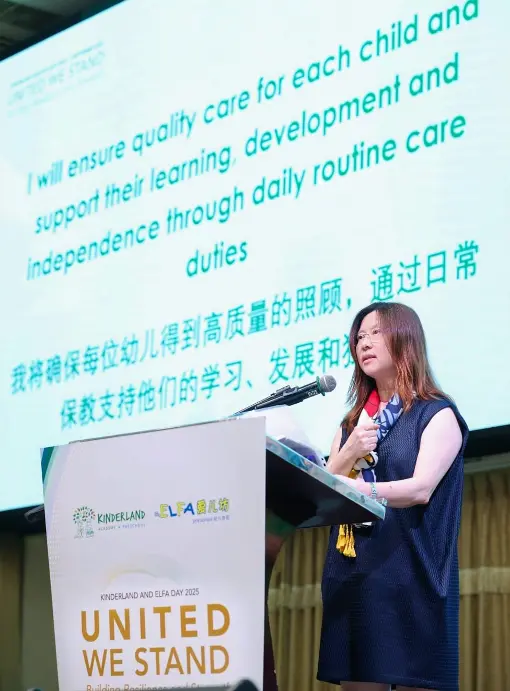 Outstanding educators and staff were also recognised for their contributions. The day was sealed with a collective commitment as educators rose to renew their Educator’s Pledge, led by Dr Carol Loy, Kinderland and ELFA Senior Director of Curriculum and Professional Development. With heartfelt conviction, she urged the staff to stand shoulder to shoulder, united in their mission to nurture every child with care and dedication.